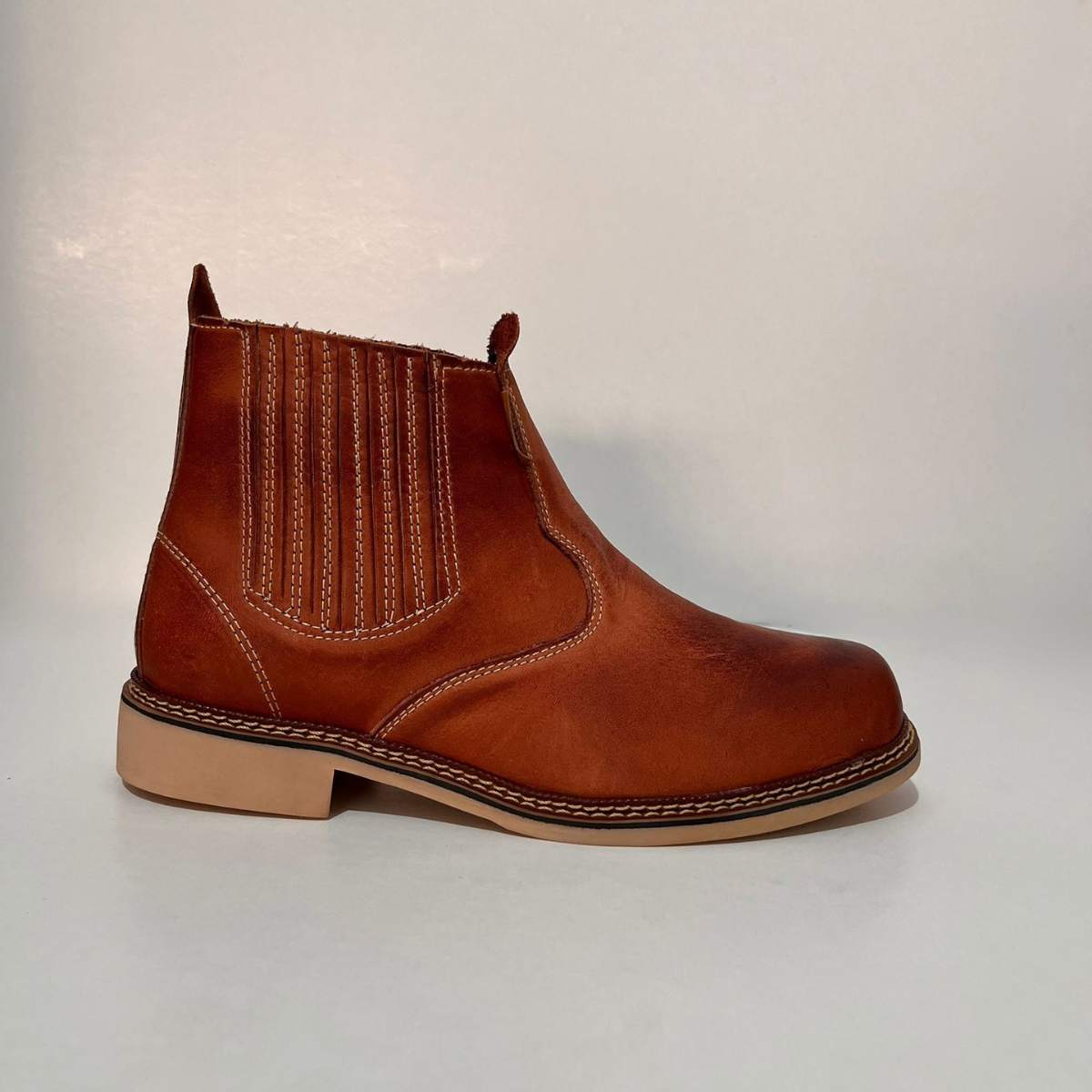 Botina Masculina Tradicional em Couro Latego Pinhão com Elástico e Solado de Látex