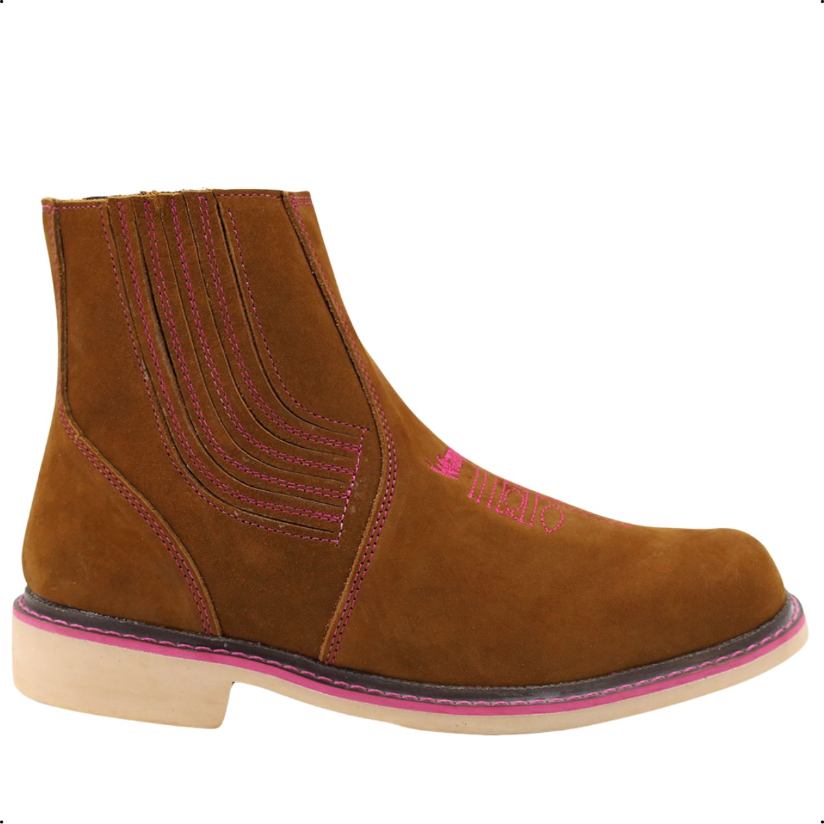 Botina Masculina Tradicional em Couro Nobuck Terra com Elástico e Solado de Látex